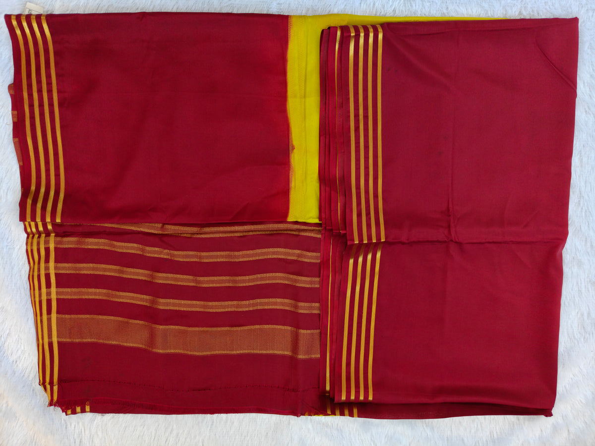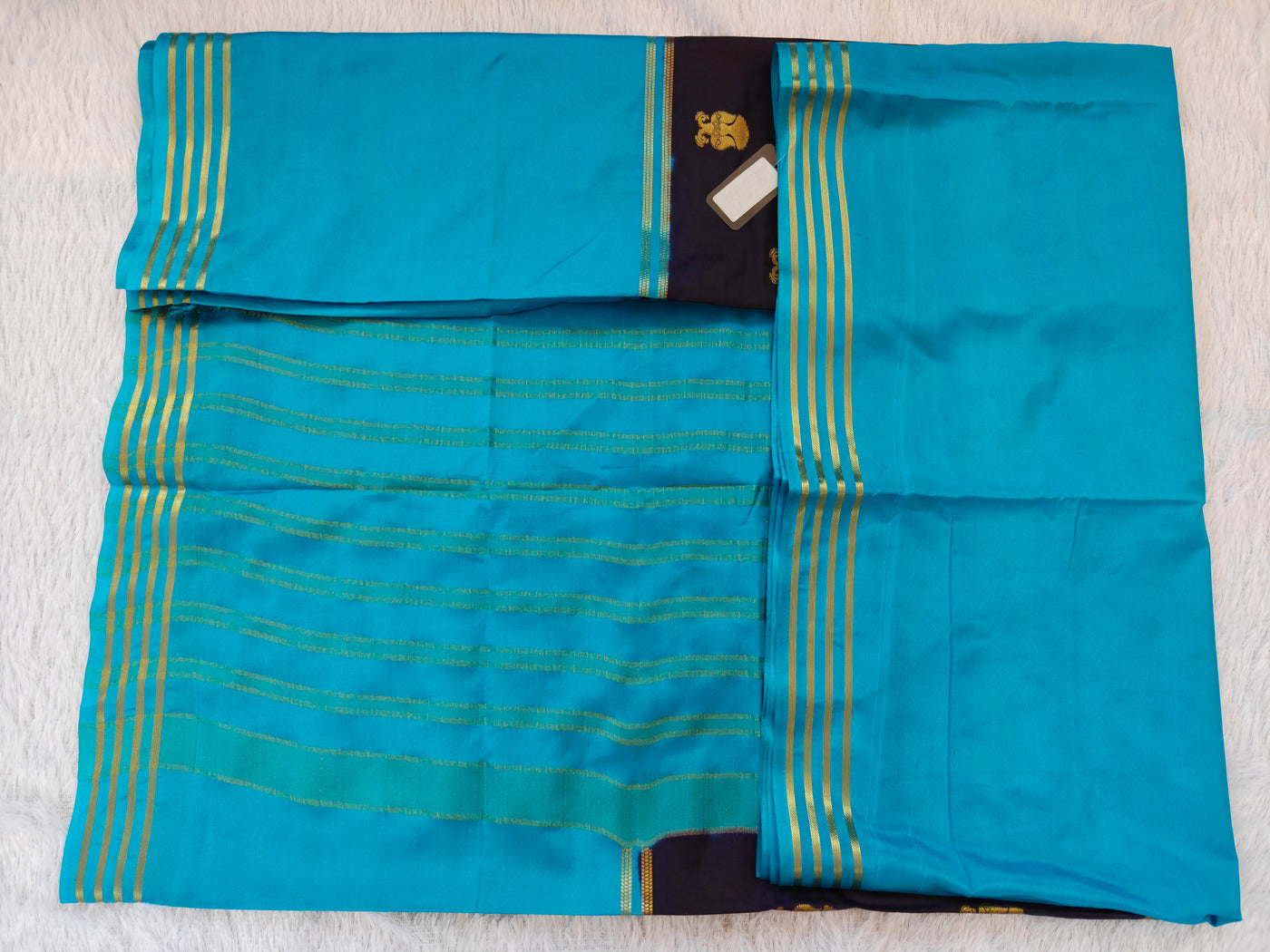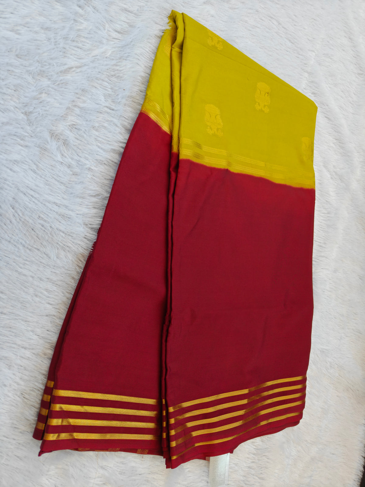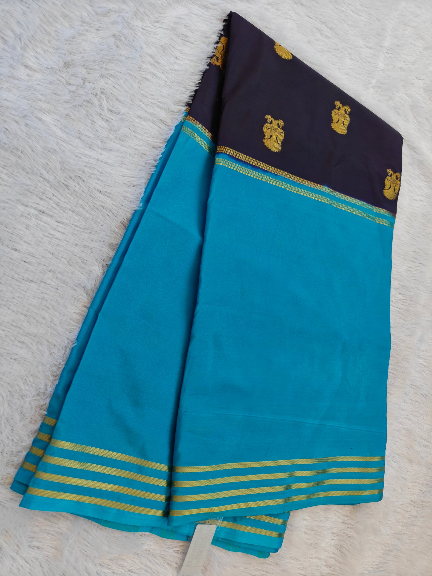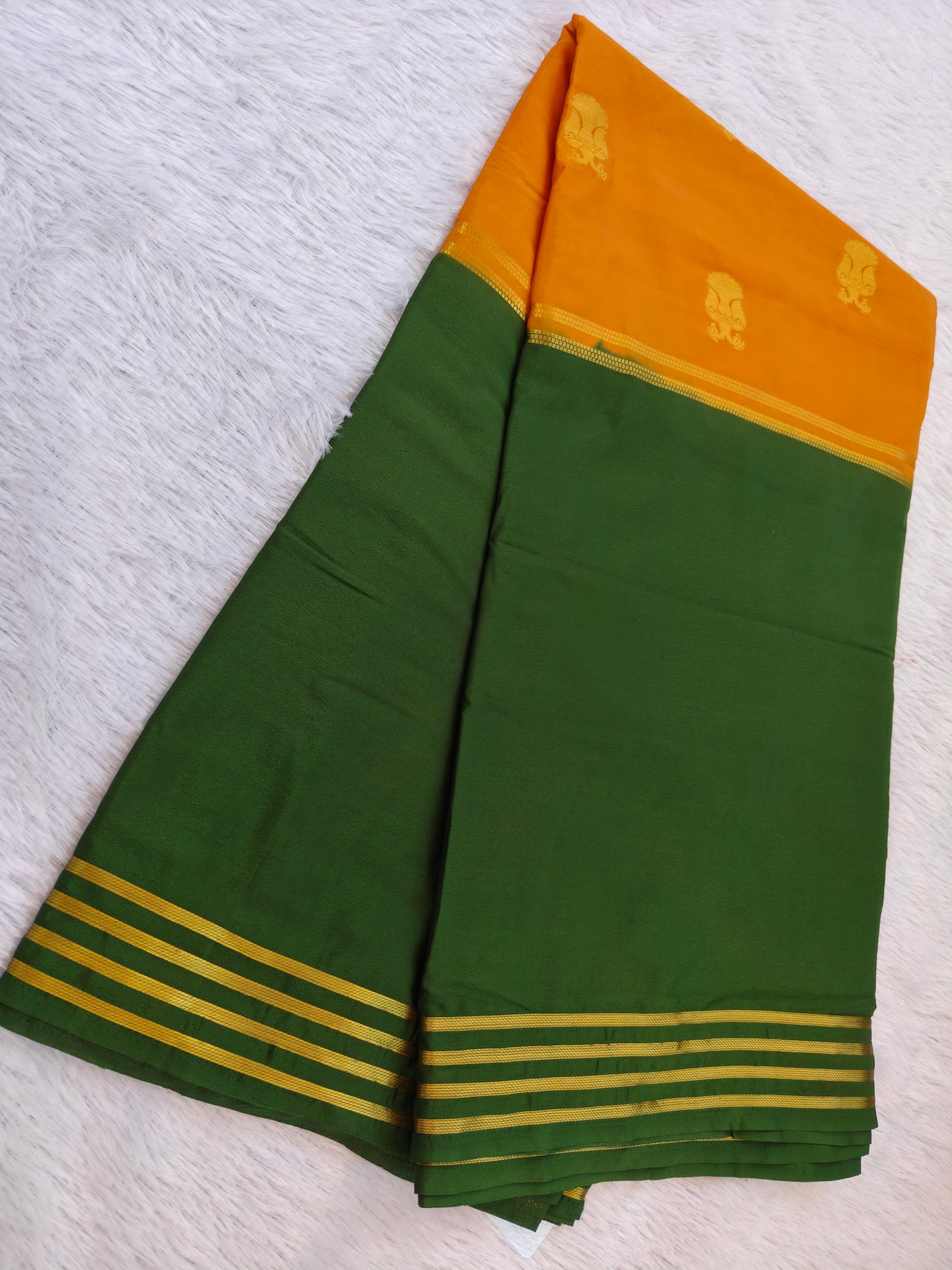 Elevate your wardrobe with this elegant semi Mysore silk crepe saree, crafted for timeless grace and everyday sophistication.