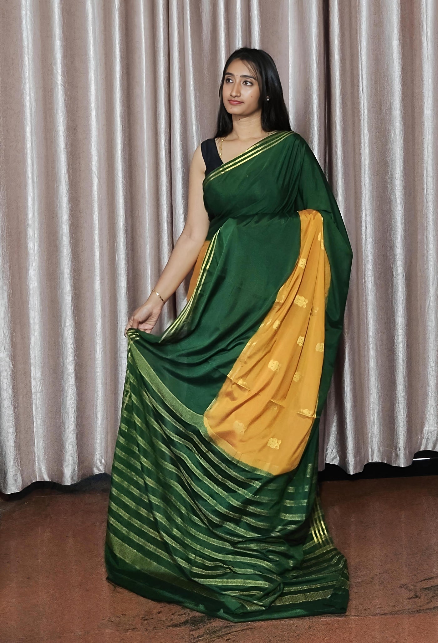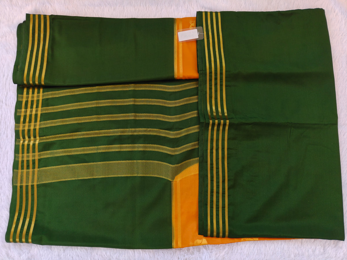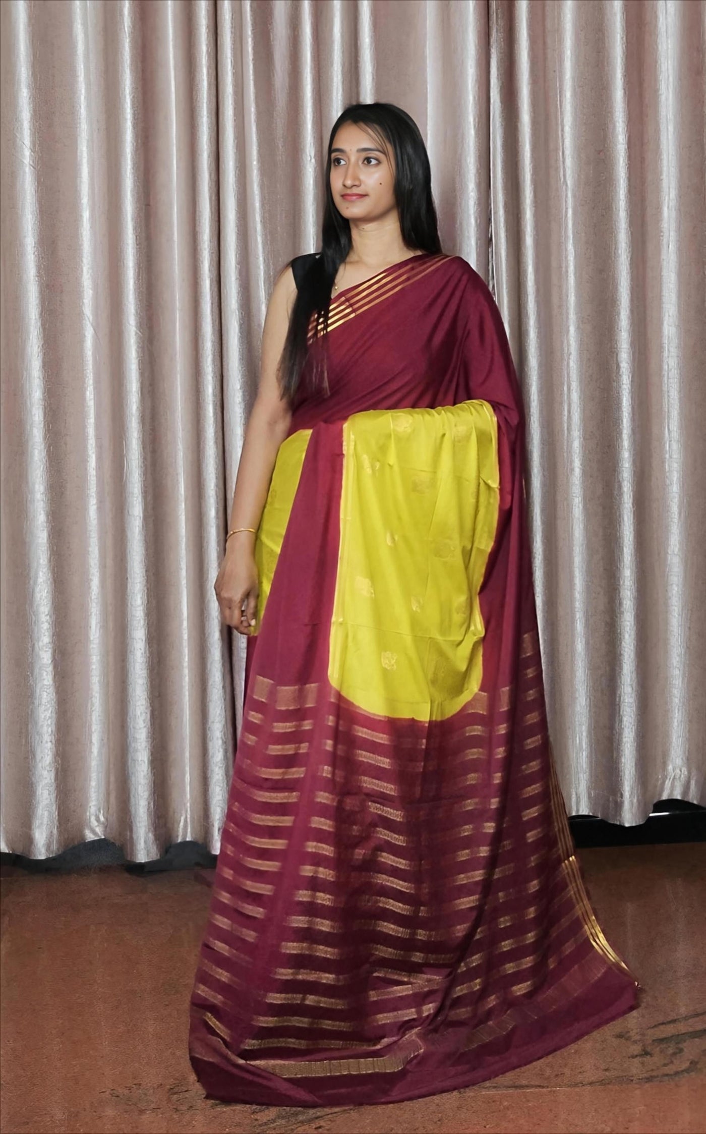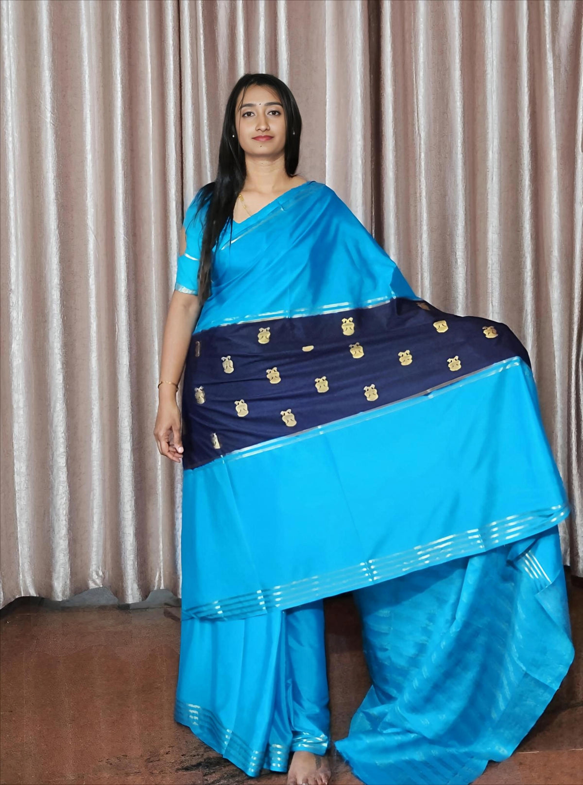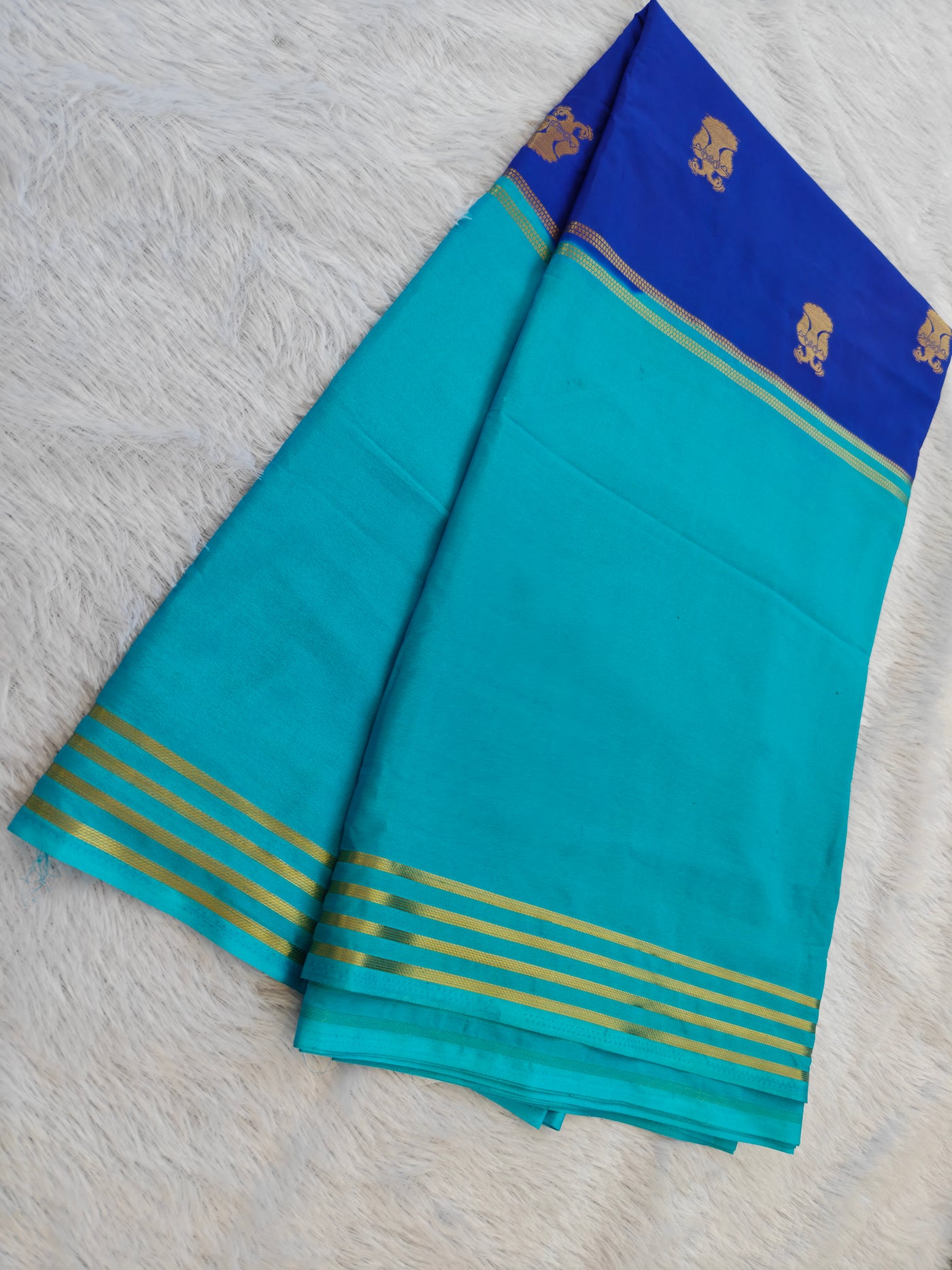 Elevate your wardrobe with this elegant semi Mysore silk crepe saree, crafted for timeless grace and everyday sophistication.