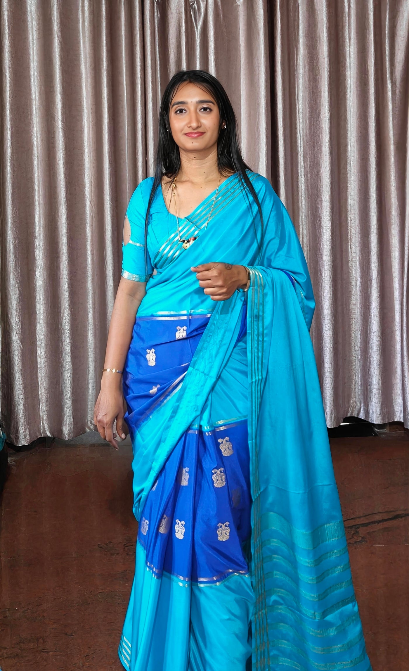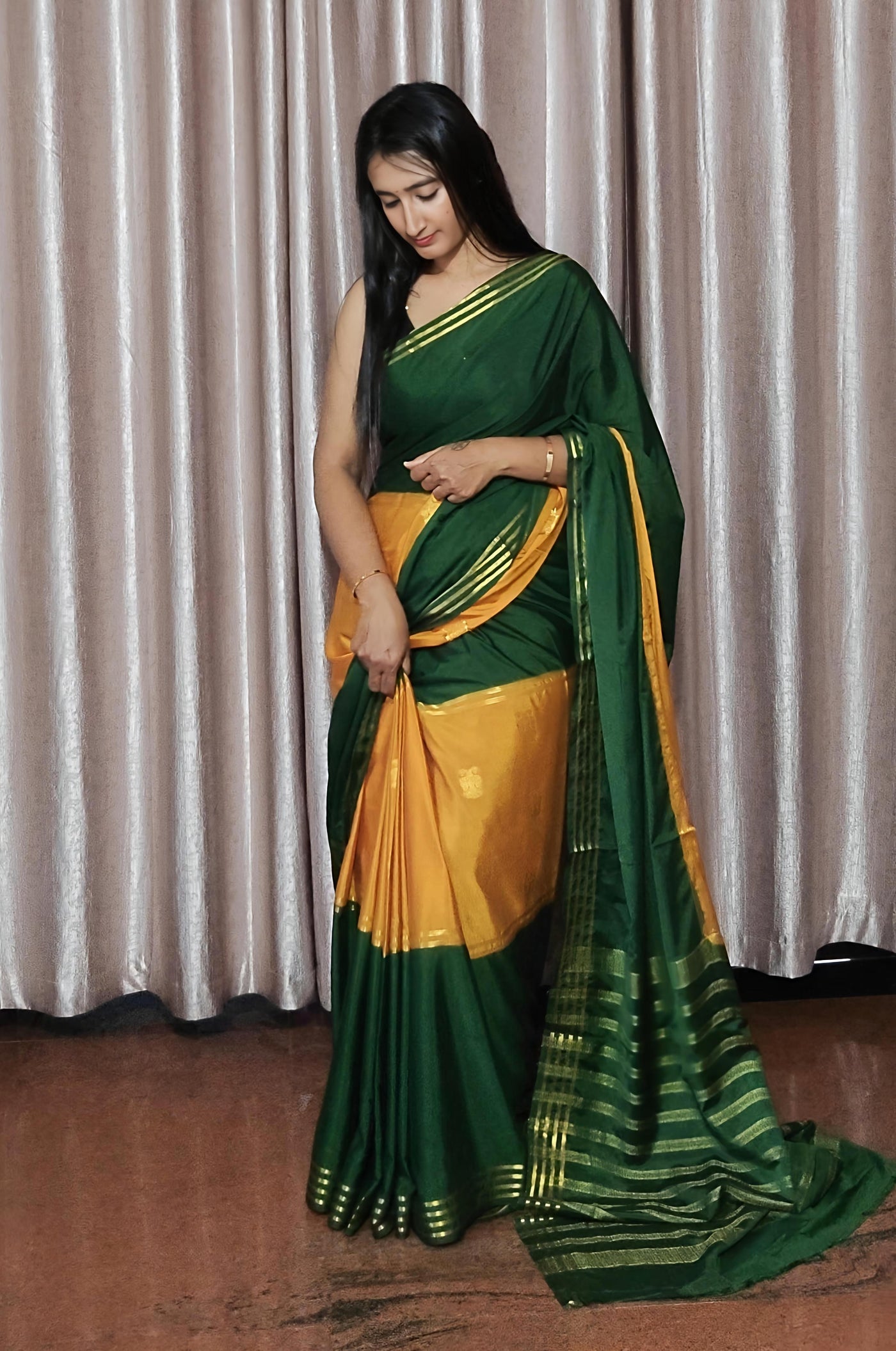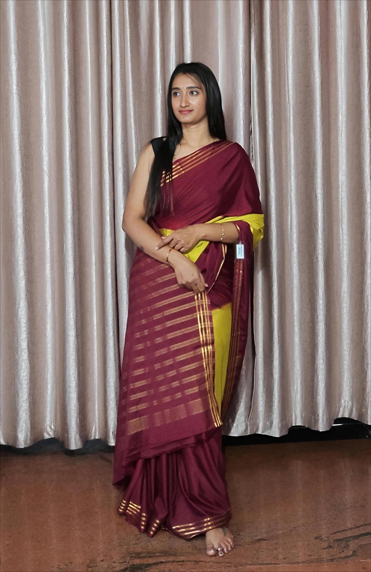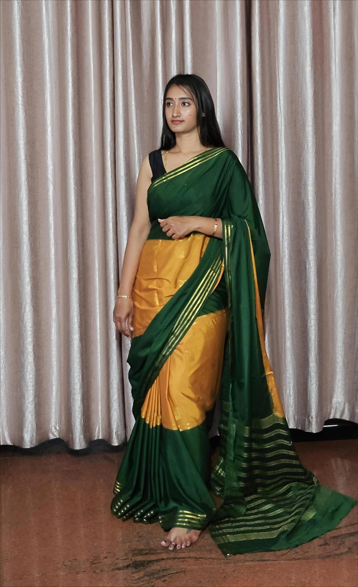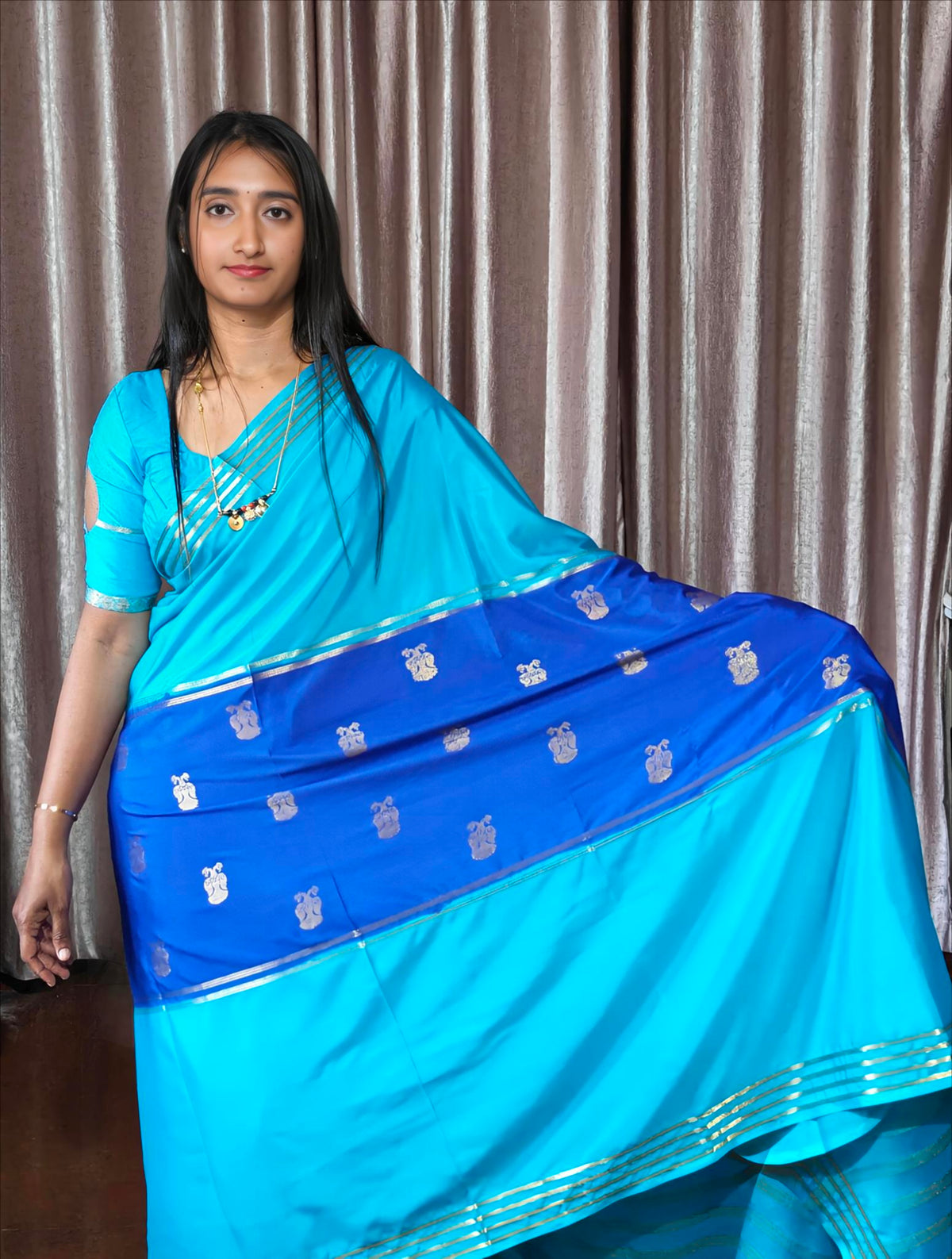Elevate your wardrobe with this elegant semi Mysore silk crepe saree, crafted for timeless grace and everyday sophistication.