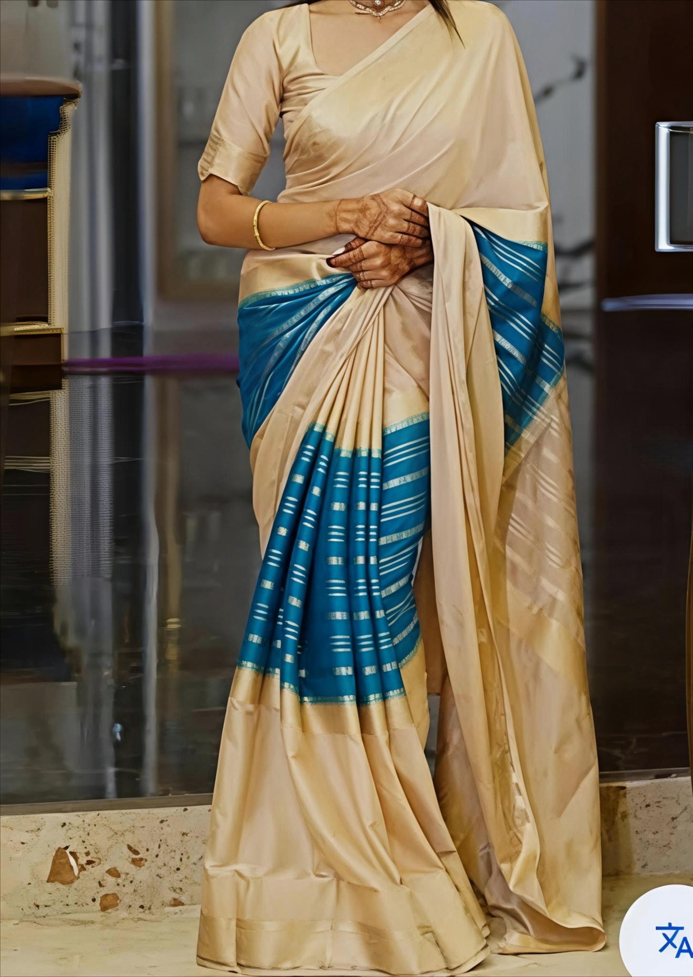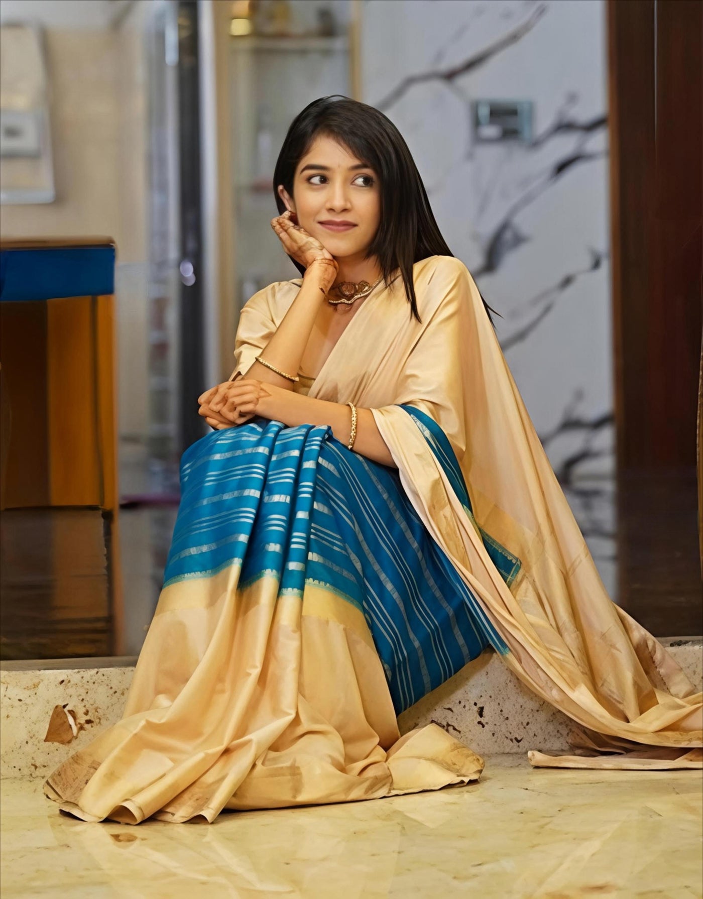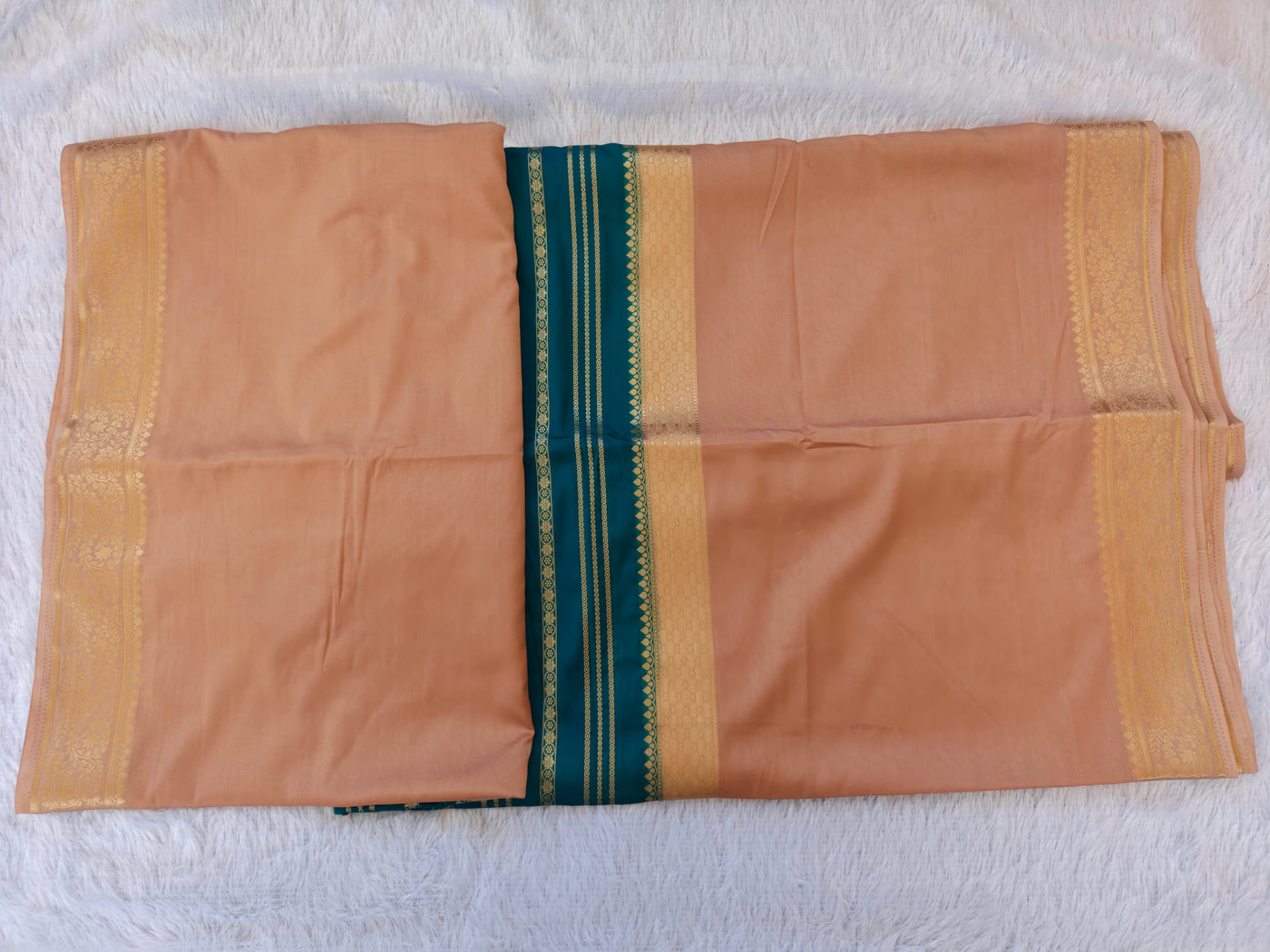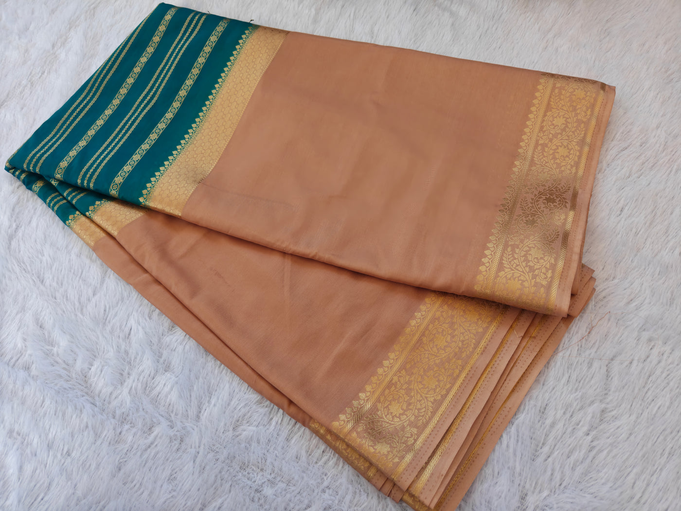 Elevate your wardrobe with this elegant semi Mysore silk crepe saree, crafted for timeless grace and everyday sophistication.